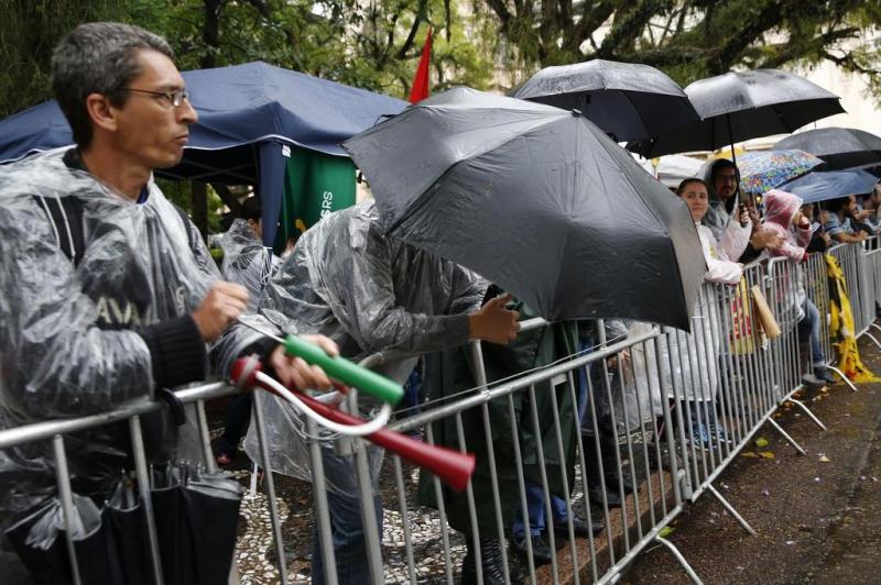 Praça cercada. Manifestantes aguardam votação na Assembleia. Foto: Adriana Franciosi/RBS